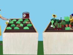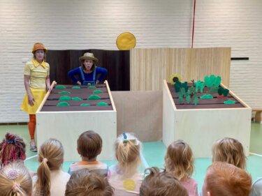 In “Loena en Flo in de Moestuin” maken ze ecologisch tuinieren (in de moestuin) inzichtelijk voor kinderen. Hierbij gebruiken ze een combinatie van spel en objectentheater.