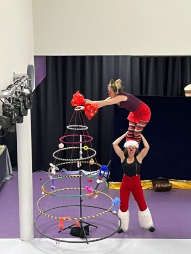 Kerst met Clowns is een visuele voorstelling vol humor en circustechnieken speciaal gemaakt voor de kerstperiode. De leerlingen beleven mee hoe een circuskerstboom gebouwd wordt en dat kerst vooral draait om gezelligheid en samenwerken.