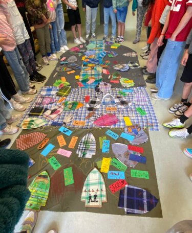 Isan vindt het ook belangrijk om altijd een stukje van het kunstwerk mee te geven naar huis, zodat de leerlingen er thuis over in gesprek kunnen gaan met hun ouders.