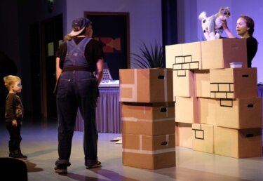 Waar is kat?, naar het gelijknamige boek van Mary Heylema, is een interactieve muziektheatervoorstelling over verhuizen, samenwerken, kwijtraken en weer terug vinden. Over wat zo lijkt en wat zo is.