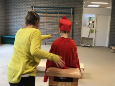 Een heel team, van de kleuterbouw tot groep 8, samen aan de slag met theater. Of bouwen aan expertise bij een aantal leerkrachten. Ieder op zijn eigen manier en werkend aan zijn eigen doelen. Samen bouwen we aan een werkwijze om theaterlessen haalbaar te maken en écht in te bedden op school. Soms zit het hem in hele praktische dingen, zoals de nodige materialen standaard in de speelzaal voorhanden hebben of een goede online vindplek voor lessen die collega’s hebben gemaakt, zodat je van elkaar kan lenen.